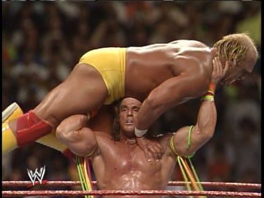At the same time, Hogan and Warrior were not known for their artistry in the ring; Hogan was used to getting tossed around and worn down by larger men for ten minutes or so before Hulking Up and dropping a leg. Warrior was known for matches as quick as his sprint to the ring, consisting of little more than some clotheslines, flying shoulder tackles, press slams, and a big splash.