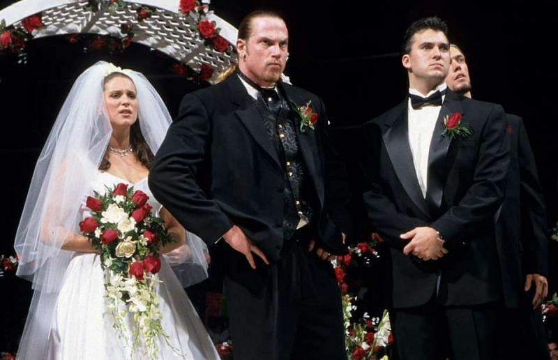 Mankind then declared that a match between him and Shane would take place right then. Mankind delivered an incredible amount of punishment to Shane, and brought out Mr. Socko. Soon after, Triple H and Chyna made an appearance, helping Shane score the win.
