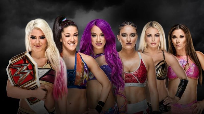 The participants of the Women's Elimination Chamber match are Alexa Bliss(c), Sasha Banks, Bayley, Mickie James, Sonya DeVille & Mandy Rose.