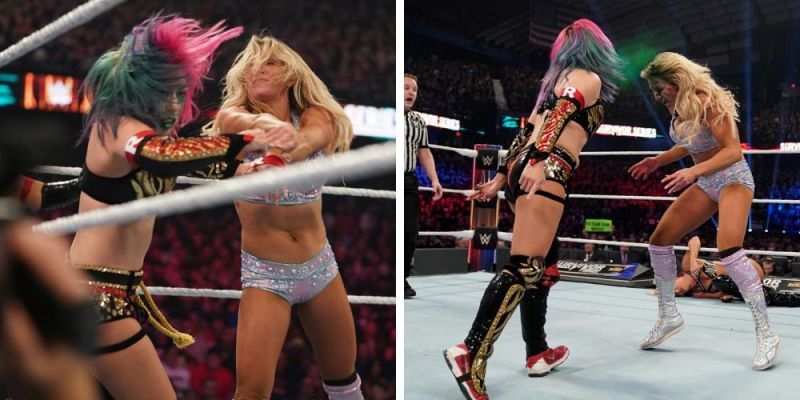 The Kabuki Warriors have already beaten Charlotte Flair and Becky Lynch once, but Flair defeated them when teaming with Natalya. Given that Becky Lynch doesn't have a feud right now and has been involved with The Kabuki Warriors, the rift that saw Asuka spit green mist on Flair, allowing Lacey Evans to get the pin on her.