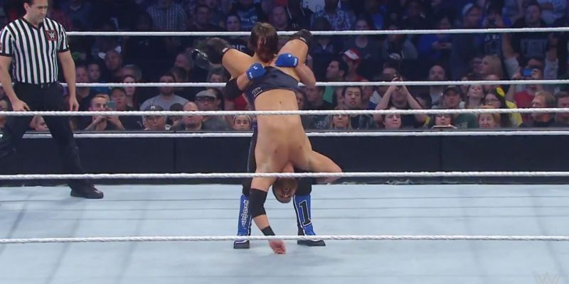 With all respect to Randy Orton, this is the true attack that 'comes outta nowhere.' AJ's phenomenal agility and speed enable him to pull off this tricky manoeuvre.