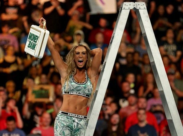 With the release of James Ellsworth, Carmella's act needs a tune-up. He was the reason for most of her heat, and without him, she could easily flounder. Cashing in here, after Charlotte had such a touching moment with her father only days beforehand, would generate nuclear heat and give the babyface a need for revenge. It would be the perfect WrestleMania feud, though with the Horsewomen match purported to be happening there, it might have to be put on hold.