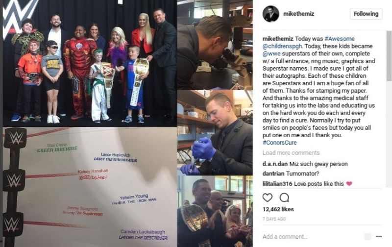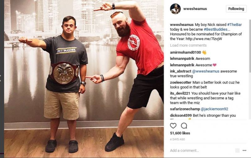 In this post by Sheamus, you can see him put his tag title around the waist of his new found friend, Nick. Just one of the many ways these guys have stepped up to the plate and made a huge difference in the lives of others.