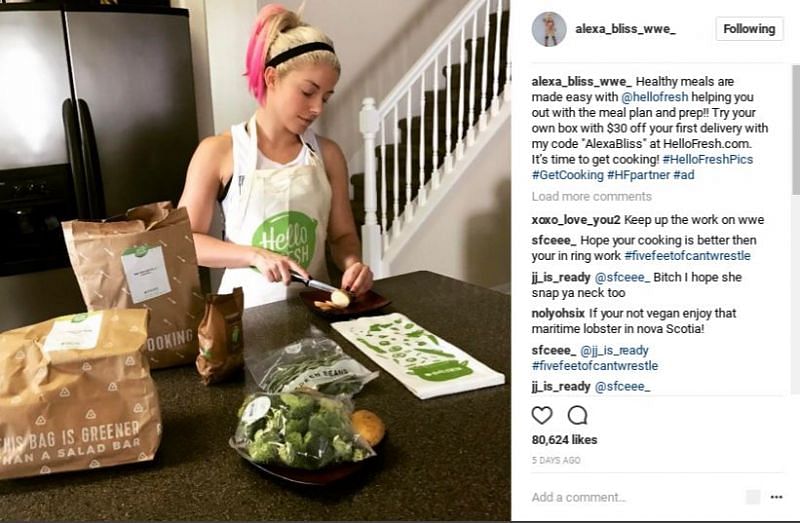 In her recent Instagram post, Alexa is shown preparing meals from "Hello Fresh," which is a meal company that has become very popular among WWE Superstars.