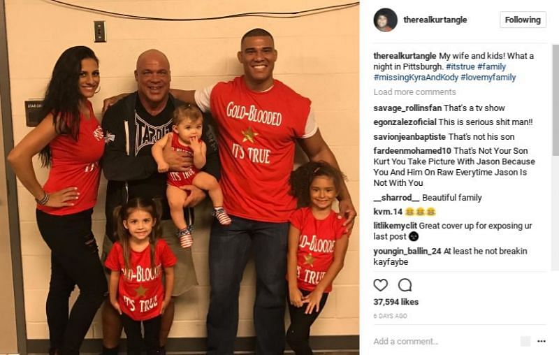 Kurt Angle did his part in contributing to the integrity of kayfabe recently, with this awesome Instagram post which shows his wife and "kids," including Jason Jordan!