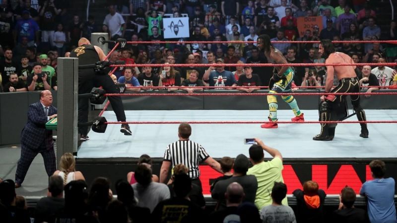 This led to Heyman teasing a potential cash-in later in the night because Rollins and Kingston were in action and Lesnar was not going anywhere. Triple H later caught up with the two champions and informed them that they were scheduled to team up later in the night to take on Baron Corbin and Bobby Lashley.