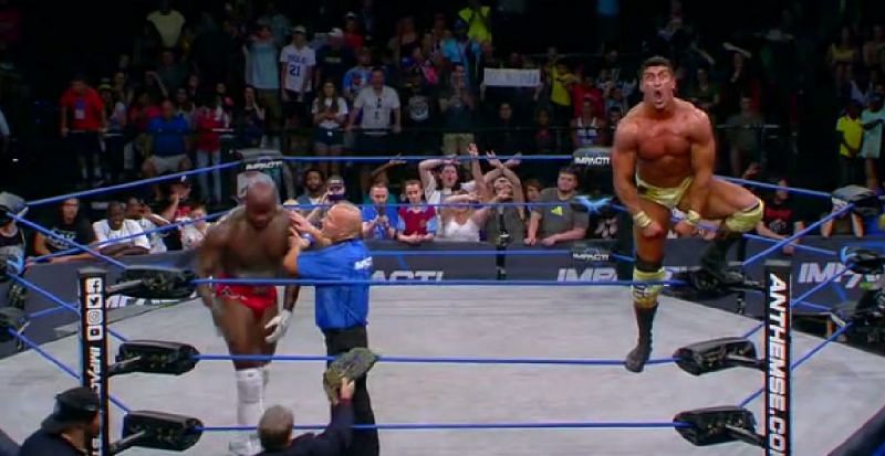 Round 2: EC3 controlled the opening couple of minutes before Moose came back. He got fired up and hit a big drop kick to end the round.