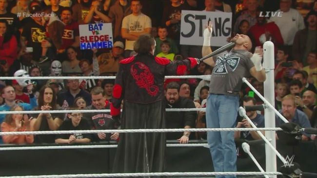 Sting would use his bat to both to attack The Game and to perform Ronda Rousey's signature manoeuvre (pointing at the Wrestlemania sign), and a once-in-a-lifetime match (which was more once-in-a-lifetime than we realized at the time) was made official.