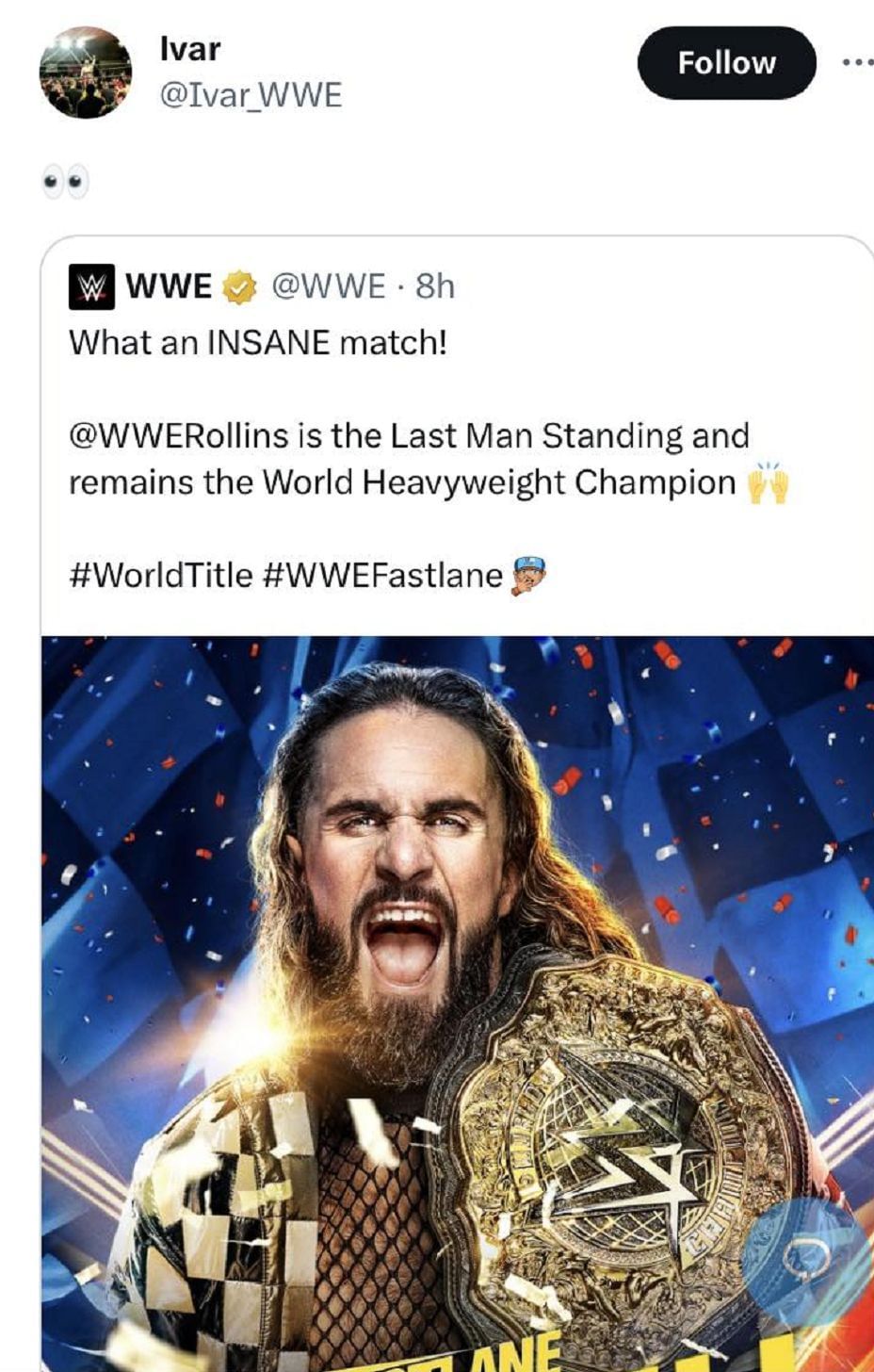 Following the match, Ivar has seemingly already staked his claim on the World Heavyweight Championship, sharing the following update.