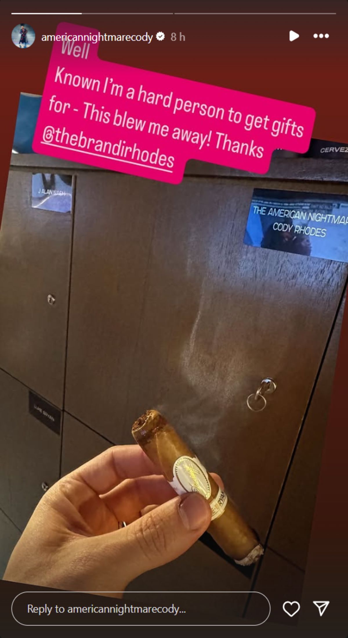 Earlier today, Rhodes took to Instagram stories to thank Brandi Rhodes for the cigar gifted to him for his birthday. The SmackDown star admitted that he was a difficult person to get gifts for. However, the present from his wife blew him away.