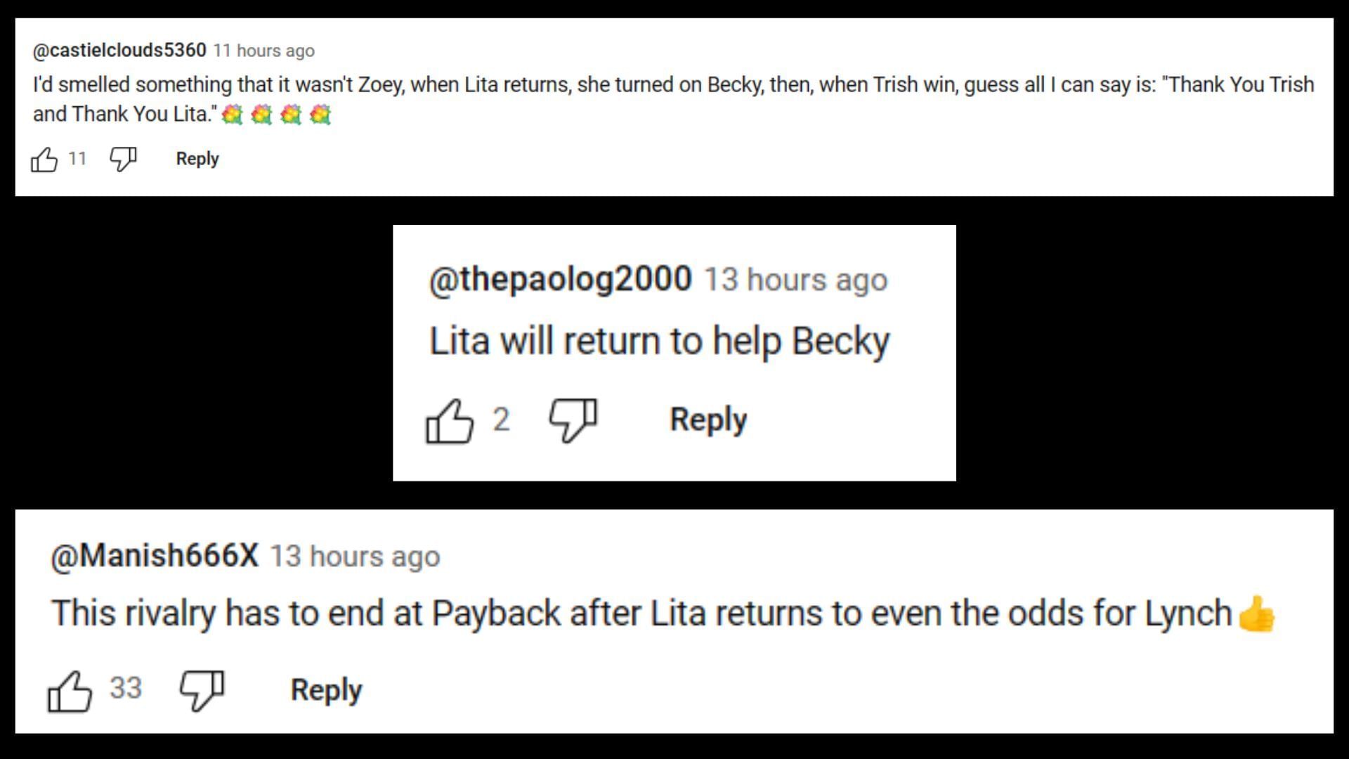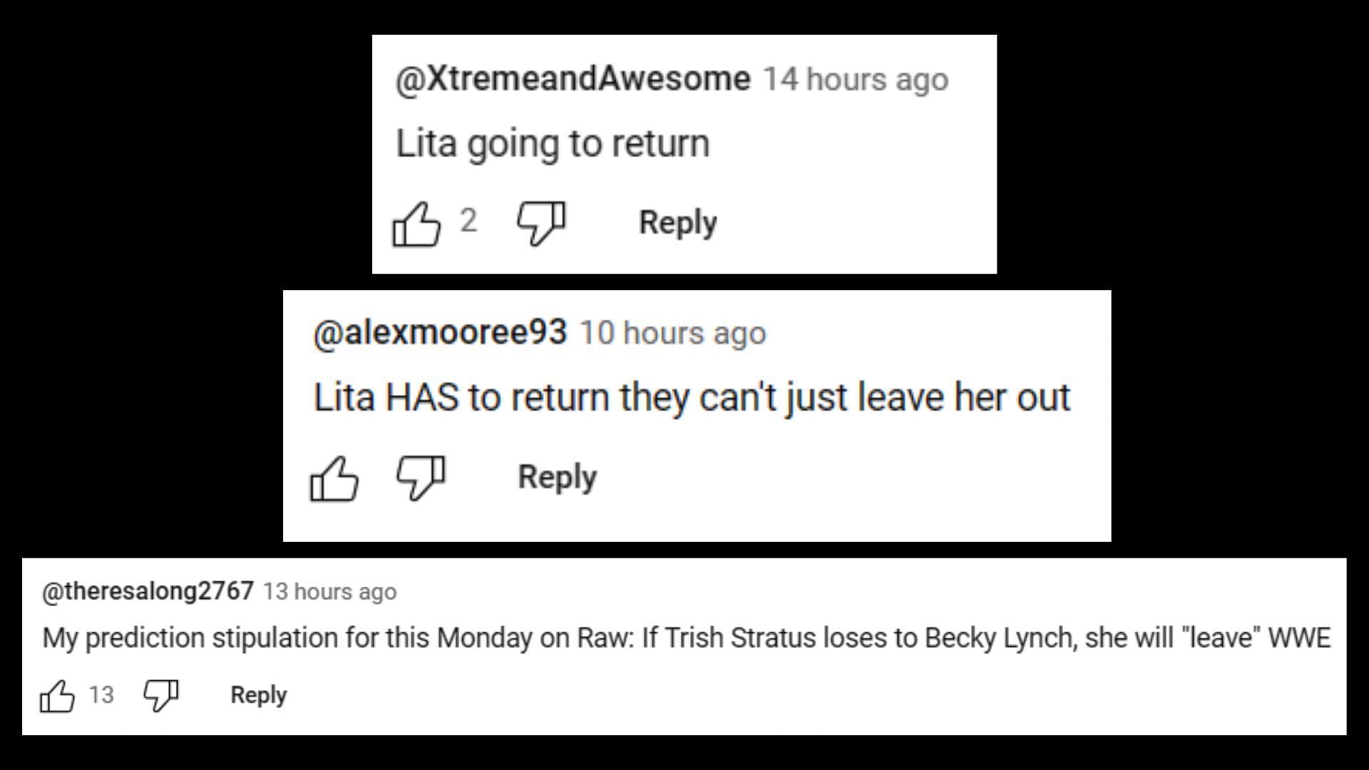 WWE uploaded a YouTube video advertising the upcoming Lynch vs. Stratus match ahead of Monday's RAW in Winnipeg, Manitoba, Canada. In the comments section, several fans predicted that Lita will get involved: