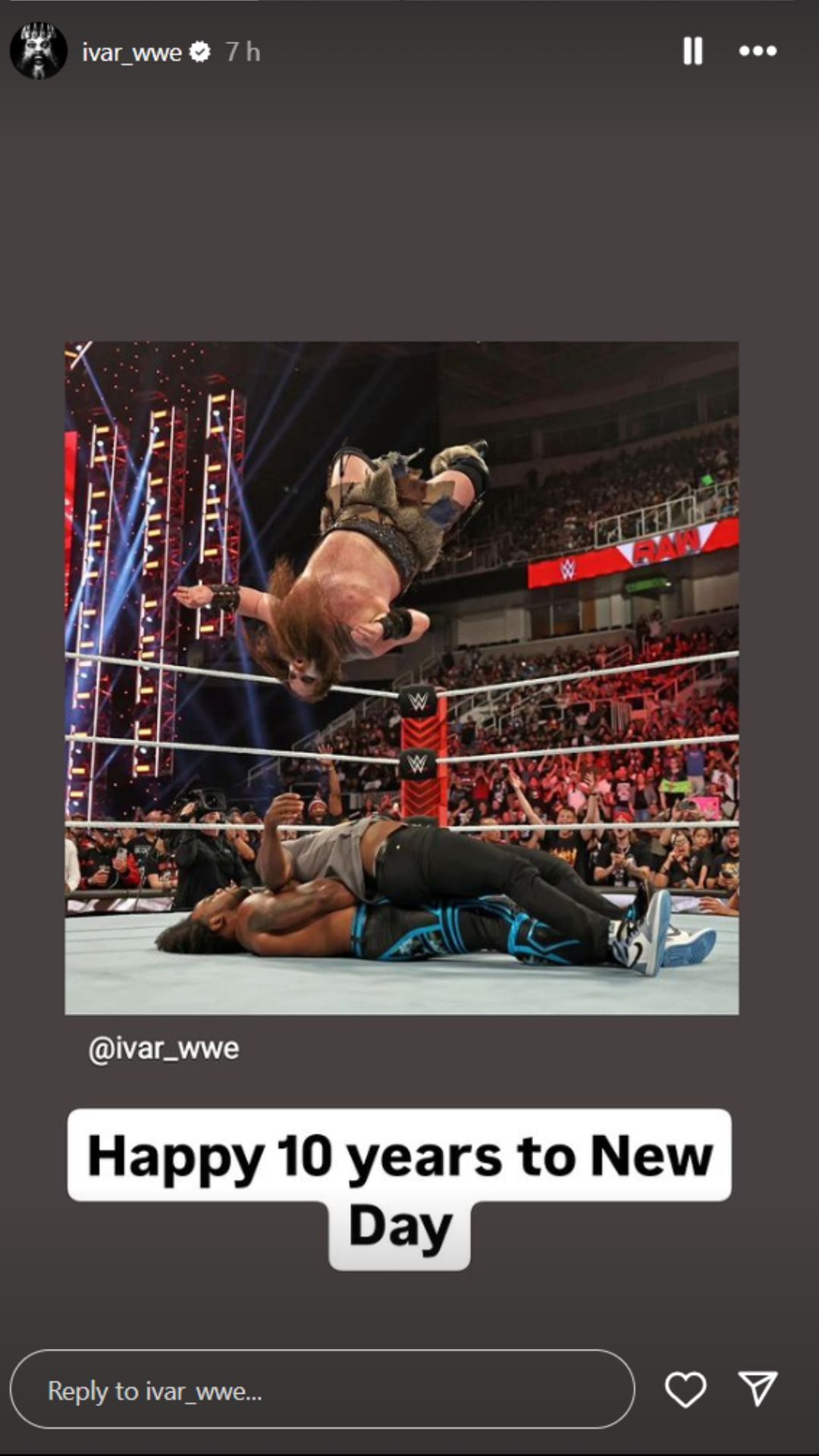 Ivar recently took to Instagram Stories to fire shots at The New Day. The former RAW Tag Team Champion posted a picture of himself from last year, hitting a top-rope moonsault onto Kofi Kingston and Xavier Woods. He defeated both the stars in singles matches during the feud in 2023.