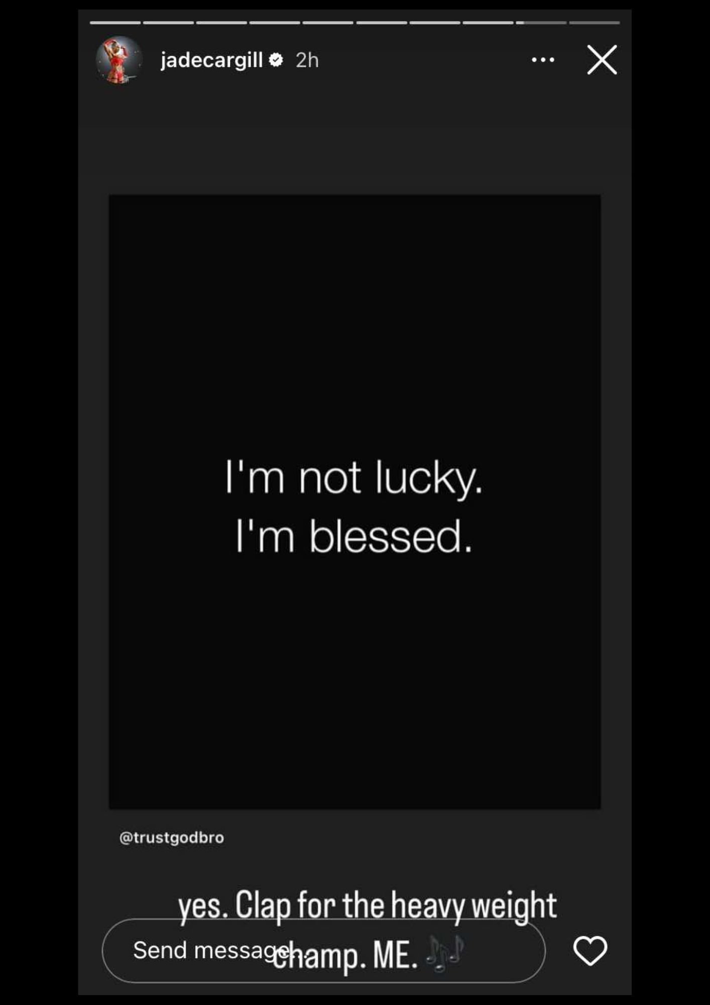 Taking to Instagram, Jade Cargill called herself a heavyweight champion, demanding fans acknowledge her: