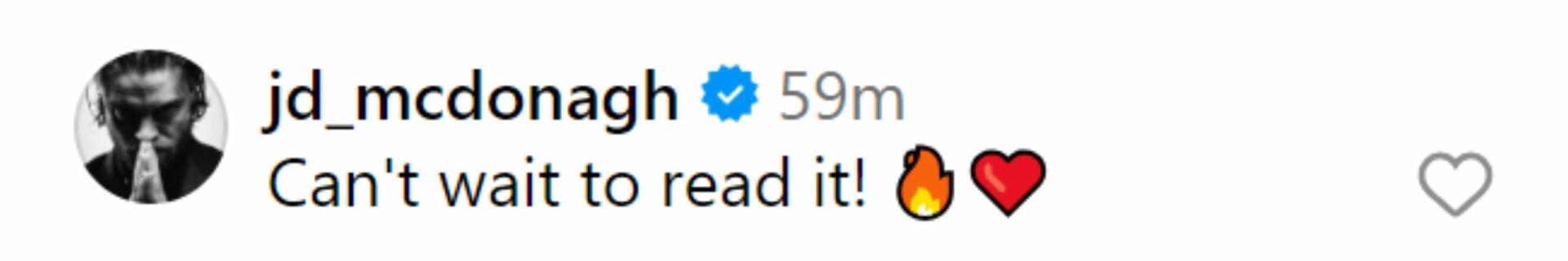 McDonagh was one of the first WWE Superstars to comment on Becky Lynch's post. Both JD and Lynch grew up in Dublin, with the former born in Bray town and The Man born in Limerick.