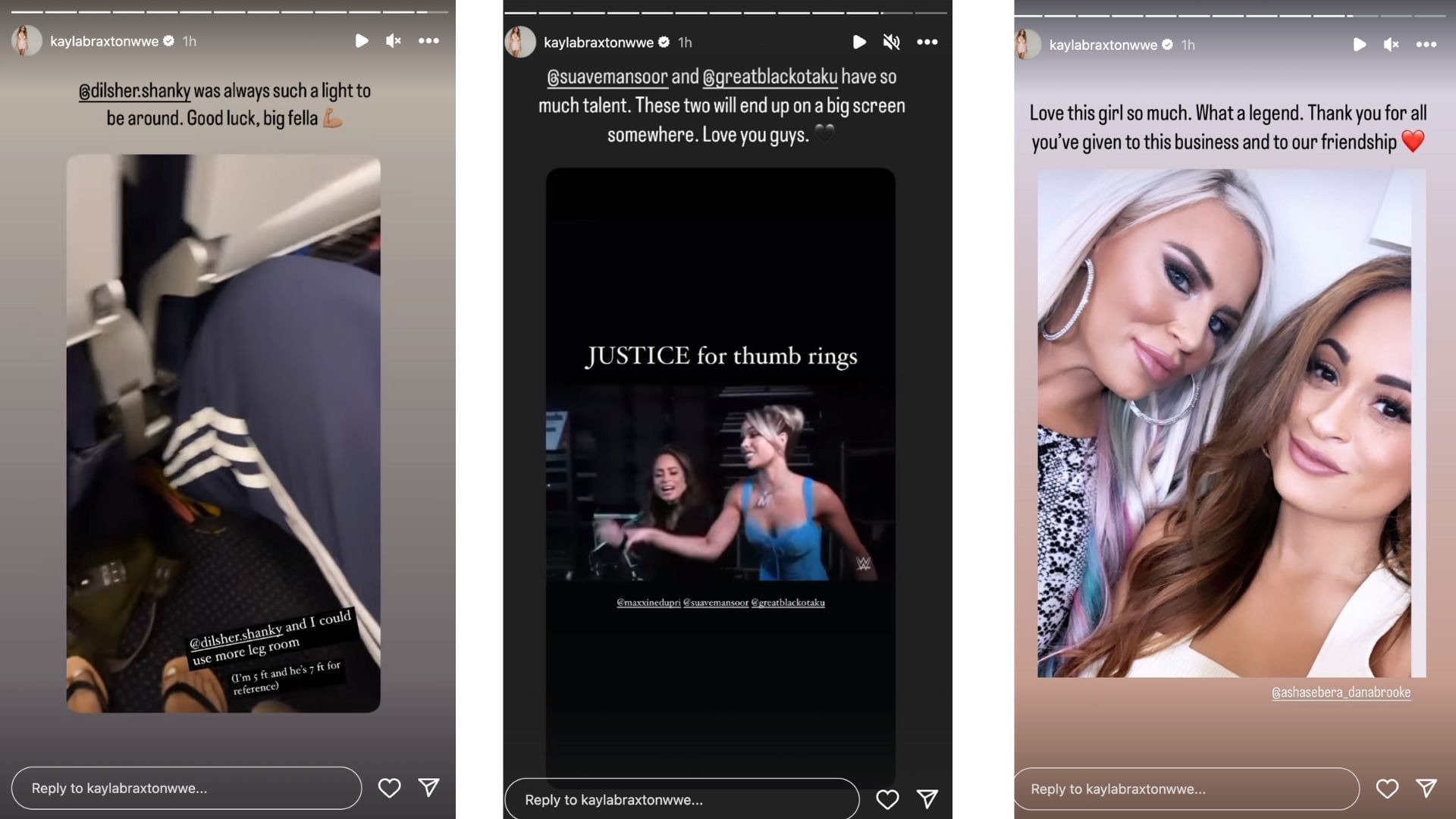 Over 100 employees behind the scenes were let go earlier this week, and many superstars from the main roster and NXT were released today. Kayla Braxton took to Instagram to send several released superstars a heartfelt message.