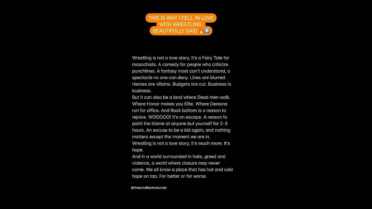 In one of his tweets, Wyatt shared his definition of pro-wrestling and called it "a fairy tale for masochists." Wyatt went on to explain in vivid detail what wrestling meant to him. He also shared the post on Instagram. Former WWE Superstar Lana recently noticed the post and shared it on her Instagram story. Lana added the following to the caption of her story: