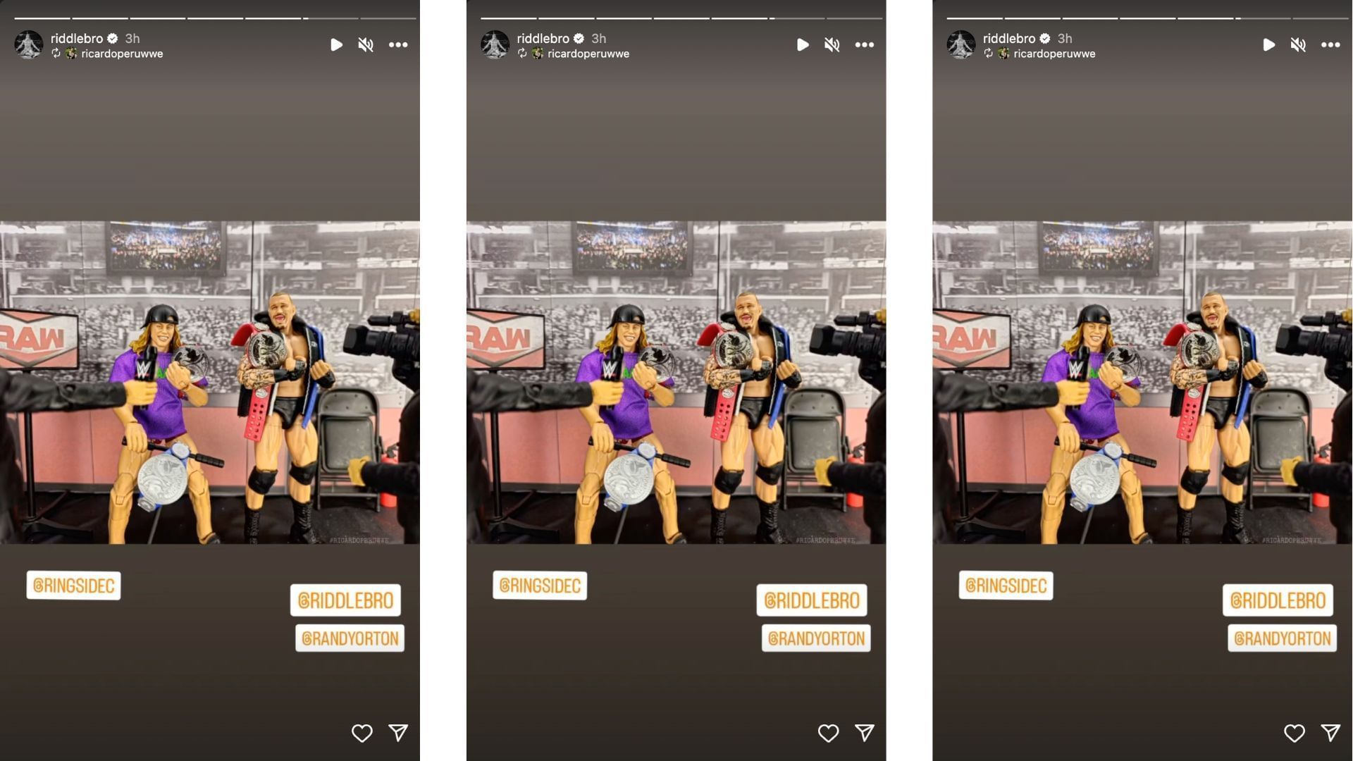 Ahead of tonight's episode of WWE RAW, Riddle took to his Instagram story to seemingly send a message to Orton. He reposted an image of the two being interviewed as Ringside Collectibles action figures. Riddle tagged his former tag team partner in the post, as seen in the image below.