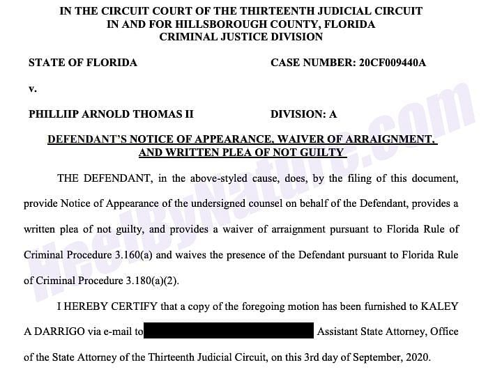 Heel by Nature obtained the plea filed by Phillip Thomas' public defender in the judicial court of Hillsborough County, Florida: