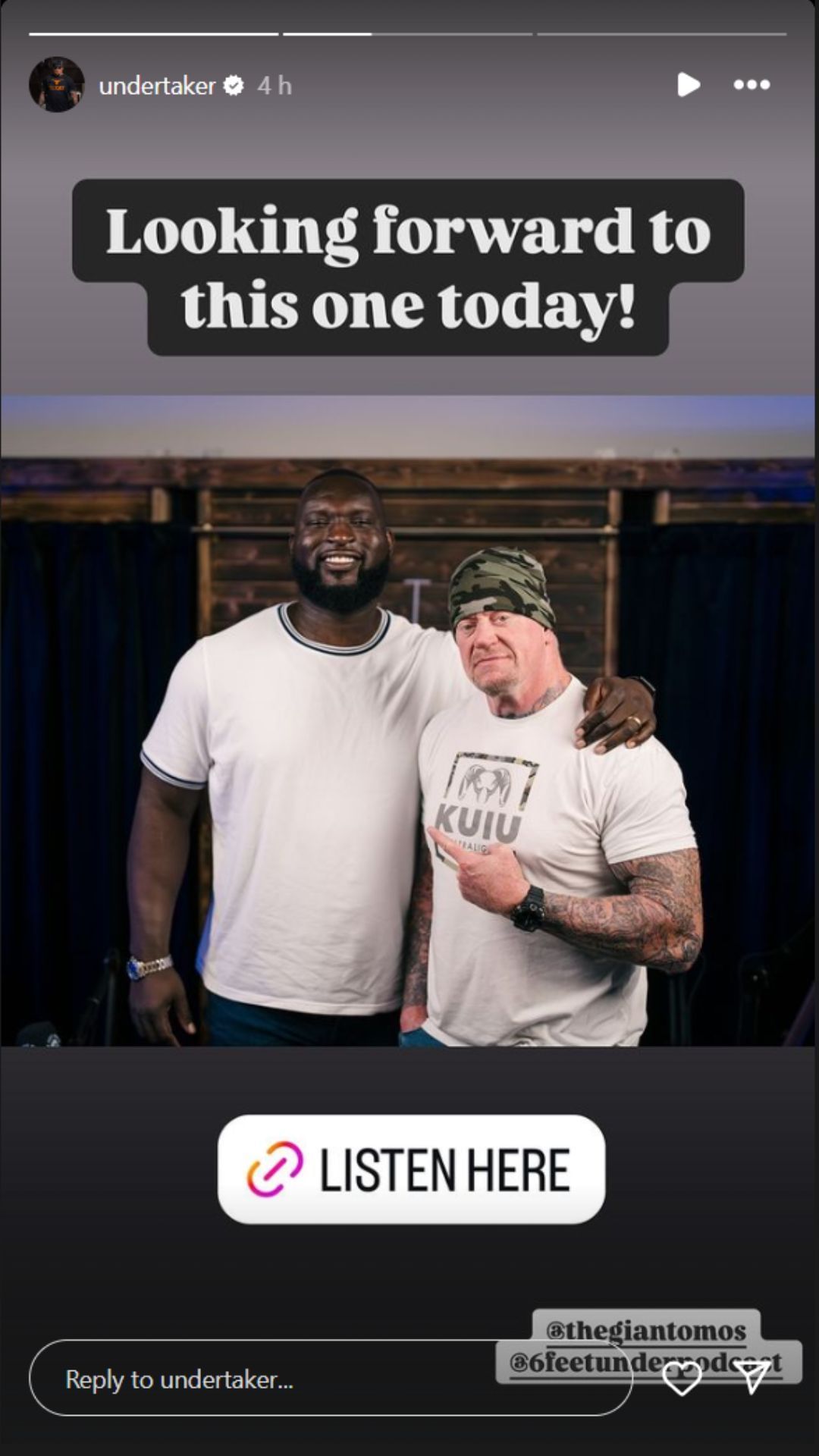 The Undertaker hosted WWE Superstar Omos on his Six Feet Under With Mark Calaway podcast. Before the conversation, he shared a picture of himself standing alongside The Nigerian Giant, claiming he was looking forward to the conversation. Omos has been absent from the wrestling promotion's programming for seven months, and his last three in-ring appearances have been in battle royals.