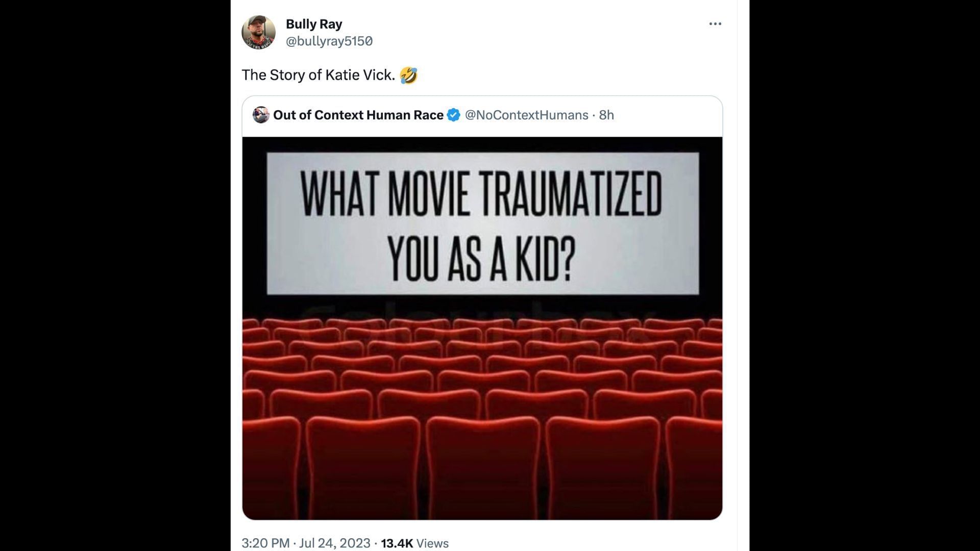 WWE Hall of Famer Bully Ray took to Twitter today to respond to a question asked by the account "Out of Context Human Race." The question was, "What movie traumatized you as a kid?" and Bully Ray responded with "The Story of Katie Vick."