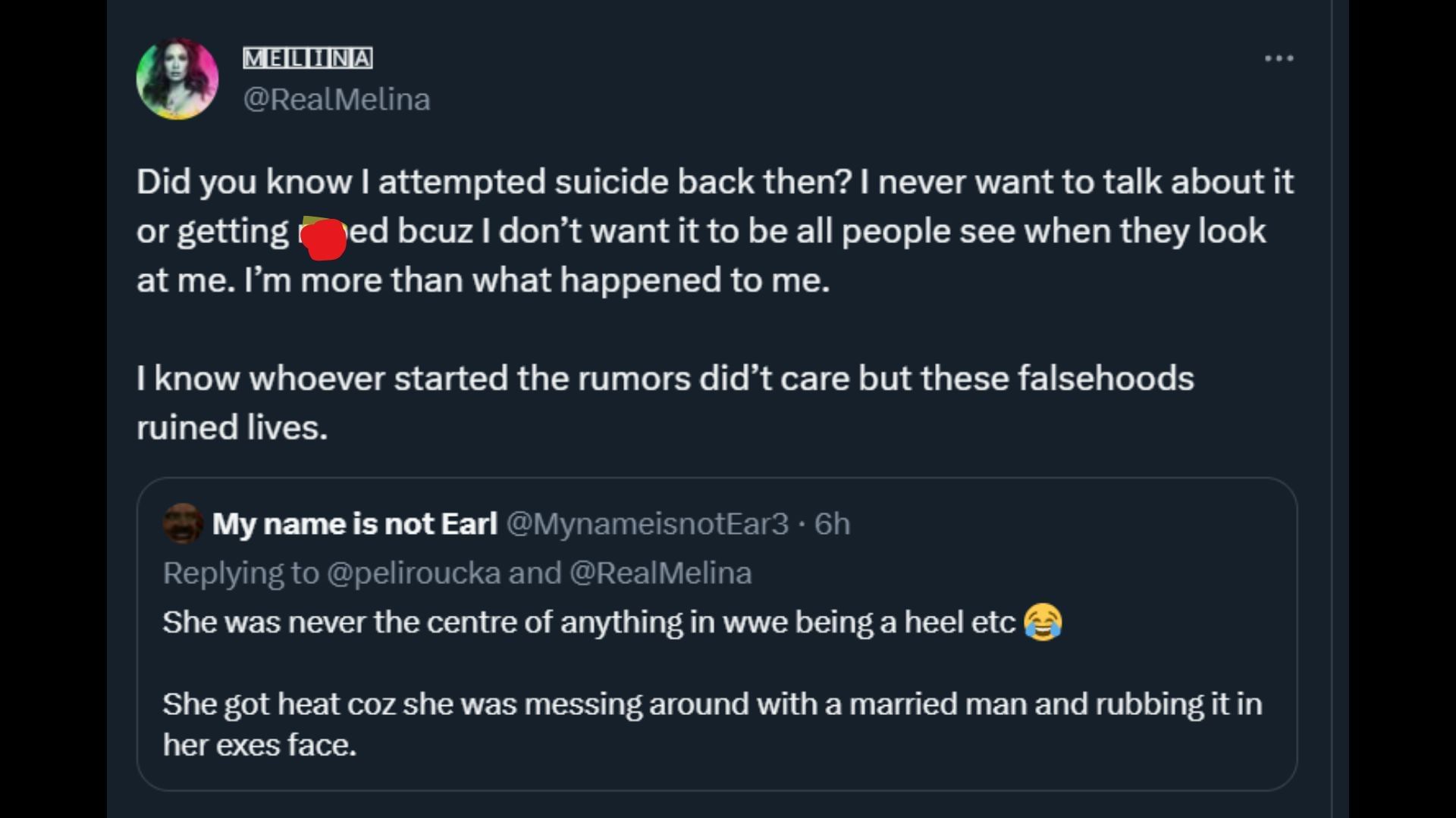 A Twitter user posted about Melina, saying she had never been the center of anything in the company as a heel. They also commented that she was messing around with a married man in front of her ex at the time.