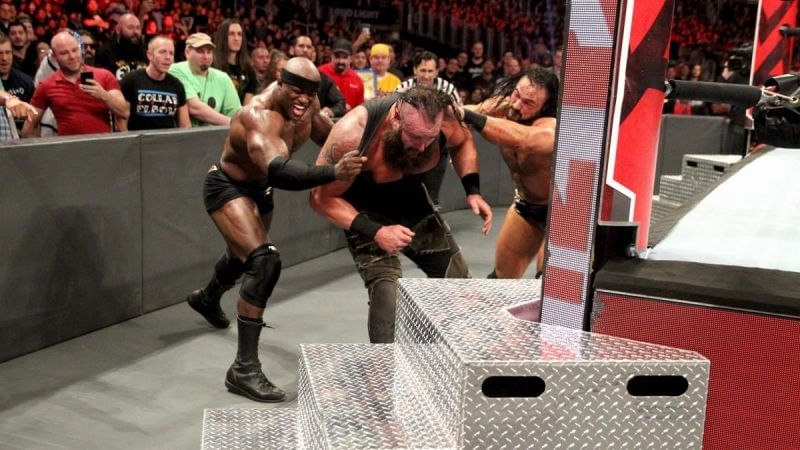 Braun Strowman had issues with his elbows, so he was written off WWE TV after a three on one attack from the acting RAW General Manager Baron Corbin, Bobby Lashley, and Drew McIntyre.