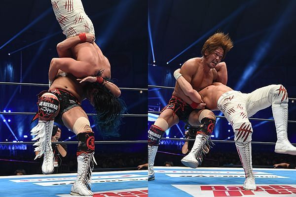 White hit a complete shot/German suplex combo. Naito tried to make a comeback with a Swing DDT but his leg cramped as White hit a uranage for a two count. White hit a Blade Buster and followed with a Kiwi Crusher but Naito kicked out.