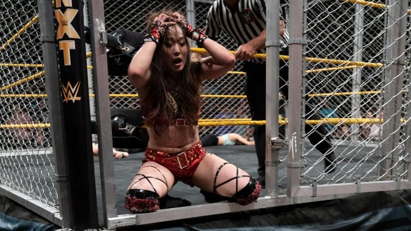 Shirai looked to escape the cage but Duke and Shafir ran down. Baszler looked to capitalize off the distraction as she went for the Kirifuda Clutch but the challenger broke free. With Duke guarding the cage door, Shirai scaled the cage but Shafir stopped her.