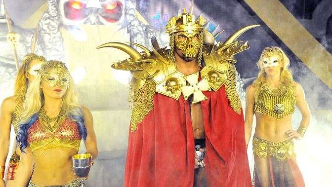 The Game rises out of his chair as the women assist in removing his attire before the man himself removes his helmet to unveil his stern yet sinister deadpan look. The dramatic music transitions into his usual theme song, before he enters the ring looking like the most self-centered bad ass in the history of the WWE.