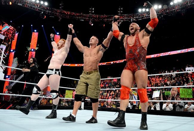 After RAW went off air, John Cena, Ryback and Sheamus teamed up to face the Shield. Cena started the match and later tagged in Ryback. As Ryback was cleaning house, Seth Rollins used a chair to get the Shield disqualified.