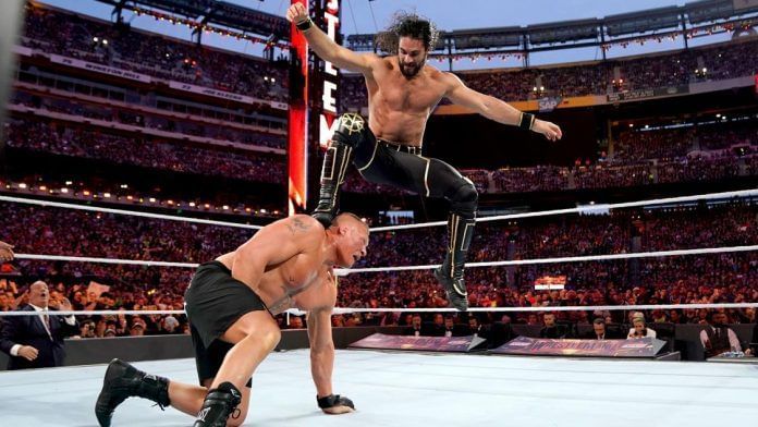 Rollins was beaten up badly by Lesnar, but each time he kept on coming back. He was impossible to stop after the low blow, and hit THREE CURB STOMPS on the Beast, to put his lights out, despite being assaulted before the match started.