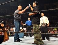 Just when things were going normal, Steve Austin drove a beer truck into the arena. And if this was not enough, he started spraying beer at McMahons and Rock. It was a great moment to witness and Austin capped off the moment in style with a middle finger salute to the Brahma Bull.