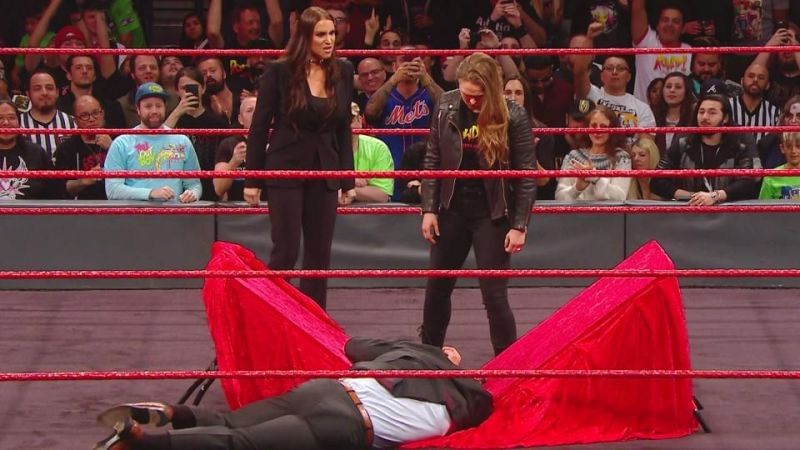 Storyline: MMA legend Ronda Rousey appeared at the end of the first-ever women’s Royal Rumble match and pointed to the WrestleMania sign. It has since been confirmed that she will be a full-time member of the Raw roster, with her official contract signing taking place at Elimination Chamber.