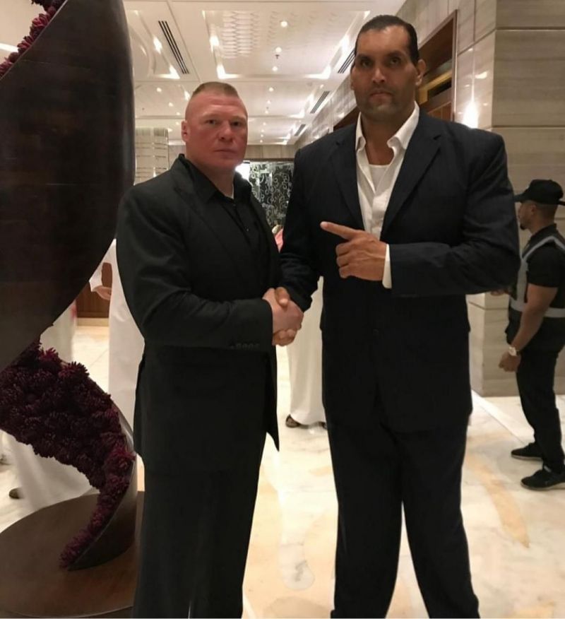 A rare picture has surfaced from the evening, showing Brock Lesnar and The Great Khali posing for a photo together. It's safe to assume that this is the only time the two Superstars have been clicked together. It's strange to see someone tower over Brock Lesnar, but that's exactly what you will witness in the photo below: