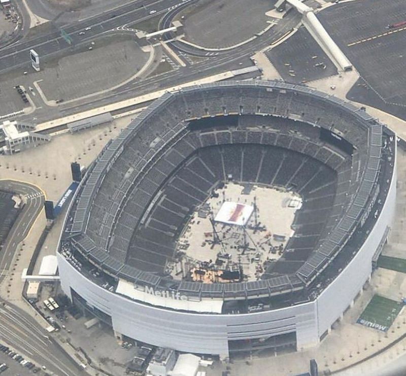 However, the ring is only one small part of it. The stage is what makes the presentation so much bigger, and last time they were at MetLife Stadium, there was a big Statue Of Liberty replica.