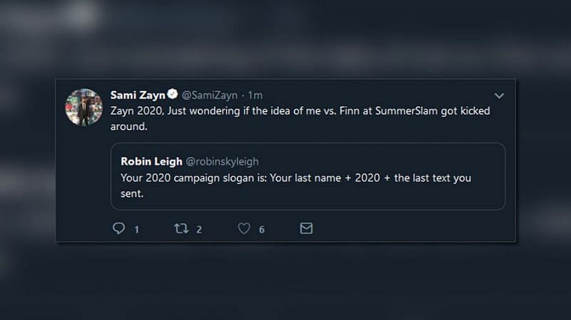 Zayn recently responded to a fan on Twitter by teasing a match against Intercontinental Champion Finn Balor at SummerSlam, but the Tweet was later deleted.