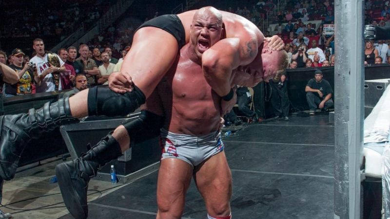 The match was initially tied at 1-1. However, Lesnar dominantly pushed towards a lead of 5-2 soon after. But somehow, Kurt Angle miraculously came back & brought the score closer to 5-4.