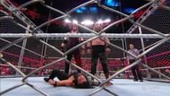 Taking his chance, Reigns hit Strowman with a flurry of kicks before somehow deadlifting Strowman for a Samoan Drop. Roman then started climbing the cage but The Bar came out of nowhere and stopped Roman in his tracks. Ambrose and Rollins came out toom delving the situation into chaos.