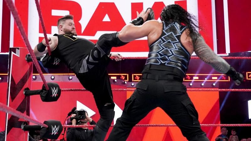 Roman Reigns came out next and spoke about how WWE didn't want him to be champion, again. Owens came out after Reigns and he said that he actually liked Reigns before adding that Stephanie was fair and unbiased. He made the mistake of putting his arm around Stephanie's shoulder and she booked a match between Owens and Reigns.