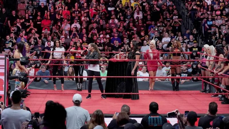 Stephanie McMahon was back to coronate Ronda Rousey. Stephanie McMahon said that Ronda Rousey wasn't Brock Lesnar and was putting Rousey down. She added that Ronda almost broke Alexa Bliss' arm before Rousey hit her with the arm. The RAW women celebrated with Ronda after Stephanie rolled out of the ring.