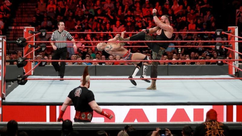 Strowman seemed to indicate that he will indeed have a partner at WrestleMania, before claiming that Kurt Angle said he could have a match against one of them tonight. The match began with Braun completing annihilating the Swiss Superman, with Sheamus watching on nervously from ringside.