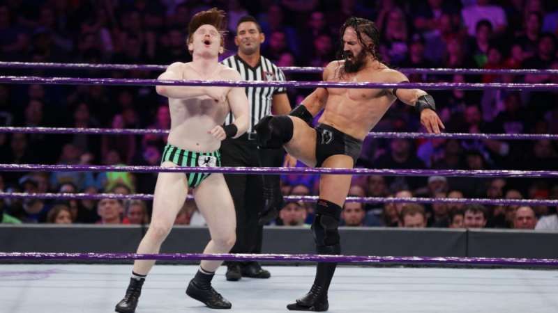 Neville used his umbrella “William the 3rd" and jumped on Neville outside the ring. Back in the ring, Neville slammed Gallagher into the turnbuckles and delivered a super plex, followed by a Rings of Saturn to submit Gallagher.