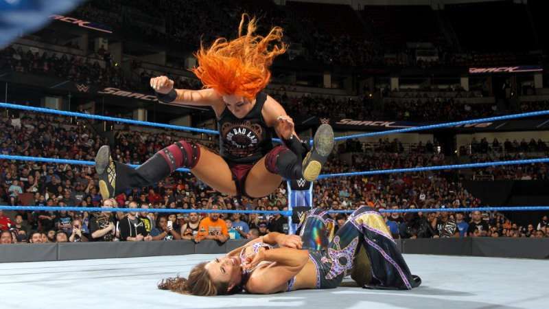We came back from commercial to see Becky in a side headlock. Mickie dragged her back down to the mat as Becky tried to get to her feet and followed it with a cover for a 1-count. Following the failed pin attempt, she locked in another side headlock. Mickie followed it with a flapjack, planting Becky face-first into the mat.