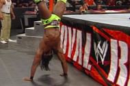 He made the best of a bad situation, though, and walked on his hands the entire way down the side of the ring to the stairs to avoid elimination. That also earned him the Slammy award for the top “Tell Me I Did Not Just See That” Moment of the Year.