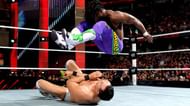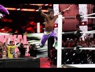 That left Kofi still in the match but several feet away from the ring. Since his feet couldn’t touch the ground because he had gone over the top rope, Kofi proceeded to jump the several feet from the barricade to the ring apron, which brought the crowd to its feet.